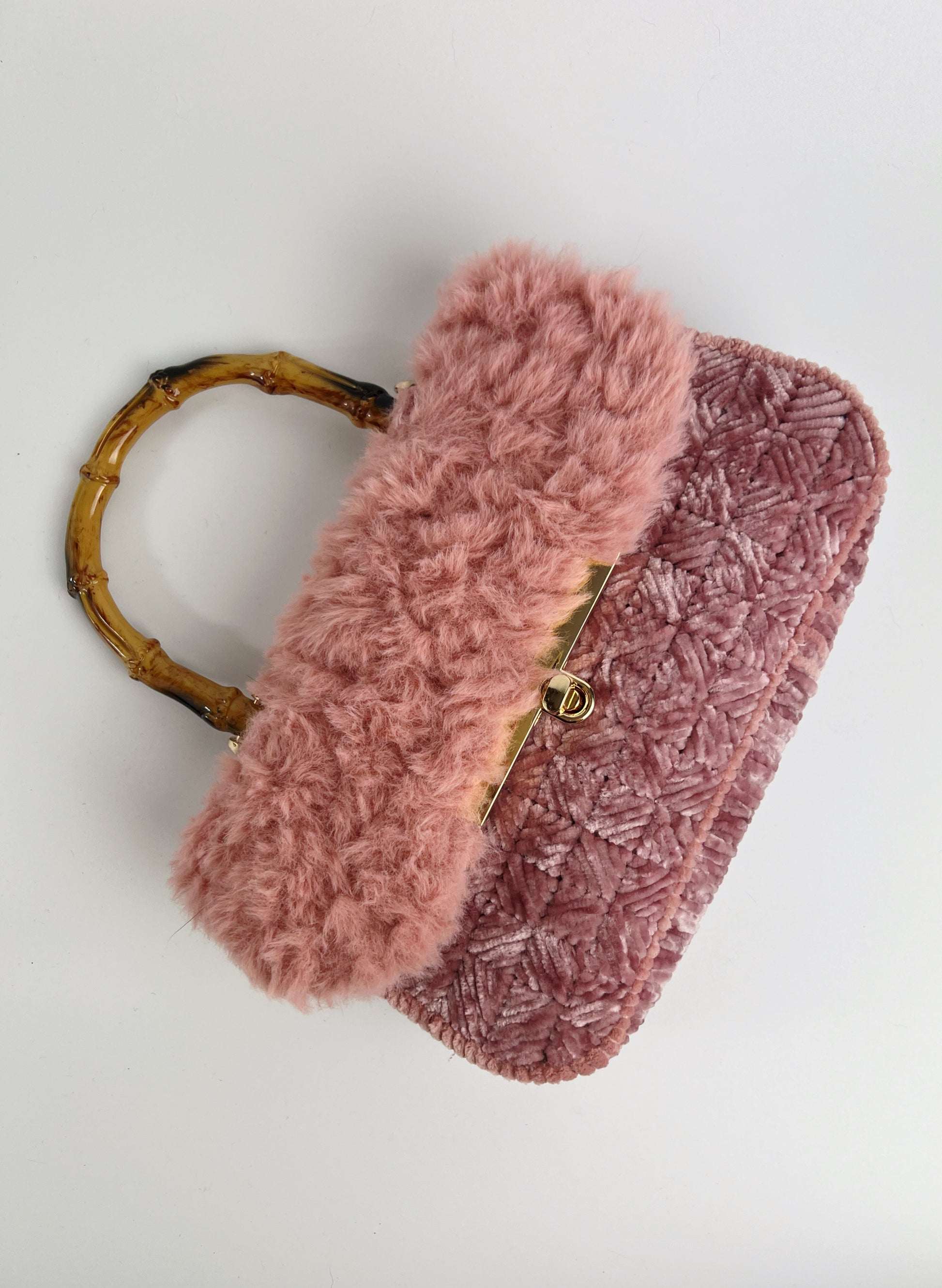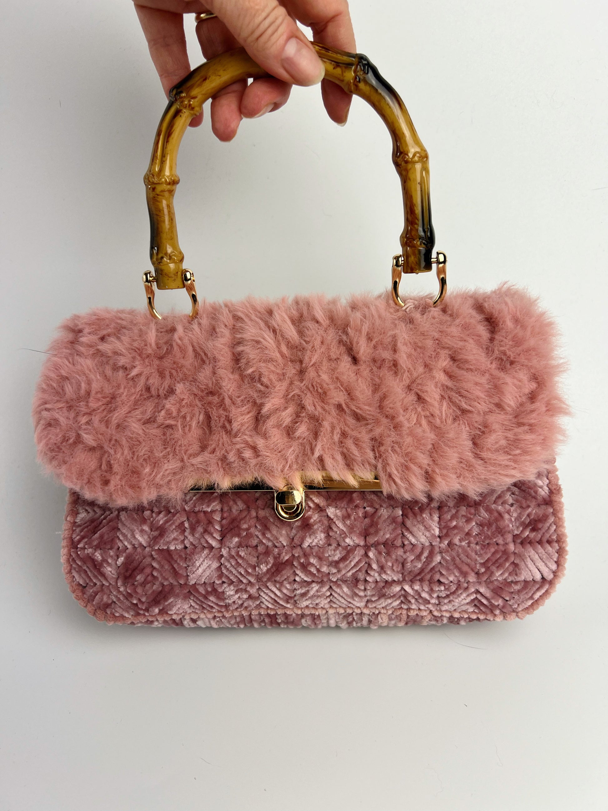Borsa rosa antico ciniglia e pelliccia